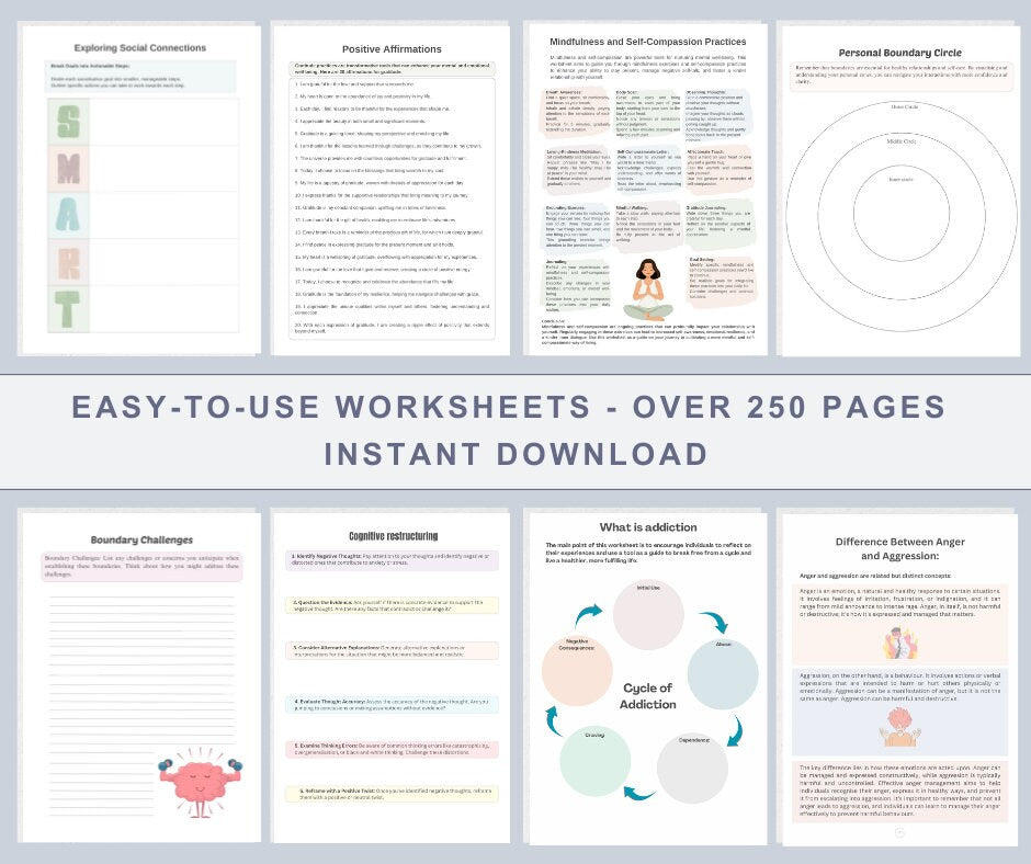 Therapy Worksheets BundleComprehensive Therapy Worksheet Bundle: CBT for Addiction Recovery, Emotional Regulation, Boundaries, and Anger